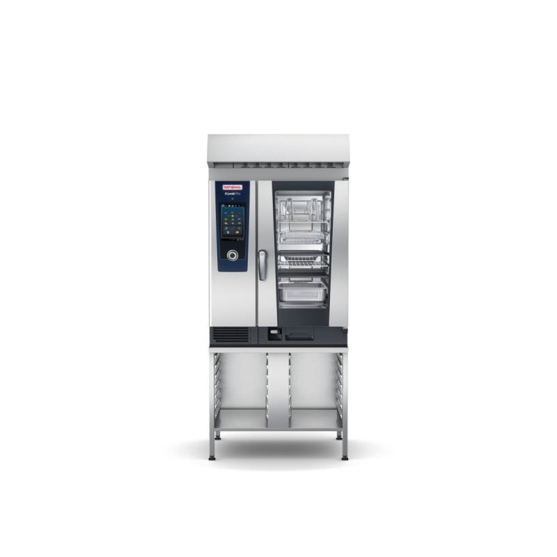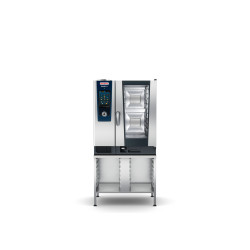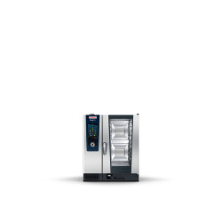 Four mixte électrique de 10 enfournements longitudinaux pour accessoires GN 1/1 à générateur de vapeur. Système de cuisson intelligent, pouvant être mis en réseau avec les modes de cuisson Volailles, Viandes, Poissons, Produits à base d’oeufs / Dessert, Garnitures / Légumes, Produits de boulangerie et Finishing et les procédés de cuisson Sauter, Pocher, Cuisson de produits de boulangerie et Griller.
