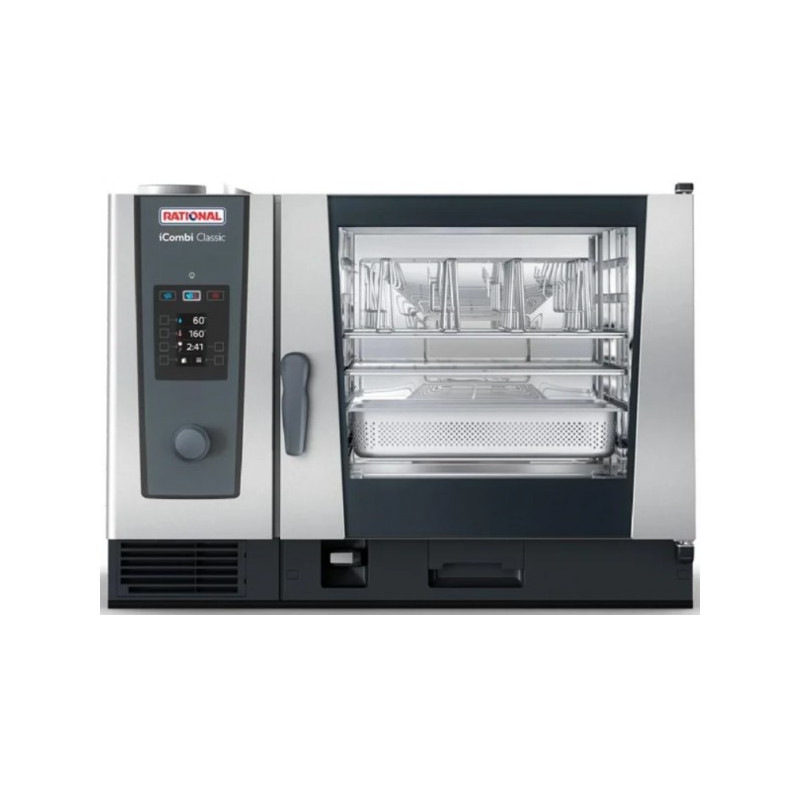 Four mixte conforme à la norme DIN 18866 et compatible avec la plupart des procédés de cuisson utilisés dans les cuisines professionnelles, avec utilisation sélective de la vapeur et de l air pulsé séparément, successivement ou en association. Capacité : > 6 enfournements longitudinaux pour accessoires GN 2/1 > Cadres suspendus standards amovibles avec 68 mm d écart entre les niveaux > Grand choix d’accessoires pour différents processus de cuisson comme les grillades, le braisage ou la cuisson au four. > Pour une utilisation avec les accessoires GN 2/1, 1/1, 2/4 Mode four mixte : > Cuisson vapeur 30 °C - 130 °C > Air pulsé 30 °C - 300 °C > Combinaison vapeur et air pulsé 30 °C– 300 °C ClimaPlus : > Gestion du climat – Mesure et régulation de l’humidité > Réglage de l’humidité par pas de 10 %