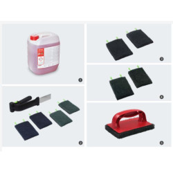 Kit de nettoyage Comprend 10 l de nettoyant pour grill, 1 bras de nettoyage, 2 tampons de nettoyage durs, 2 tampons de nettoyage doux, 1 éponge de nettoyage.