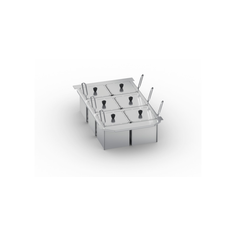 Kit de 6 paniers portion 1/6 GN non perforés avec couvercle + cadre pour paniers portion type 2-S