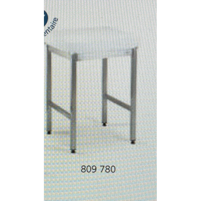 billot en polyéthylène blanc haute densité HD 500, épaisseur 100 mm - piétement soudé en inox . pieds en tube 35 x 35 mm avec entretoises de renfort, sur vérins anti-glissement . ceinture haute tube 60 x 30 mm - livraison sur palette - marque NF Hygiène alimentaire - fiche technique n° 101 701 - Porte-couteaux latéral - dimensions 400 x 365 mm - en acier inox alimentaire - tasseaux verticaux en polyéthylène pour la protection des lames de couteaux - crochetable sur la ceinture de la table