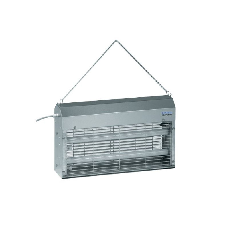 livré avec 2 tubes actiniques longue durée de 40 W - construction inox - grilles d électrocution et grille de protection en fil inox - cordon d alimentation longueur 1,2 m - chaînette de suspension inox - tubes actiniques longue durée d efficacité, 1 an - tension 230 V - 50 Hz - indice de protection : IP 21 - conforme à la norme NF EN 60335-1, NF EN 60335-2-59 (fiche technique n° 10.224.0)