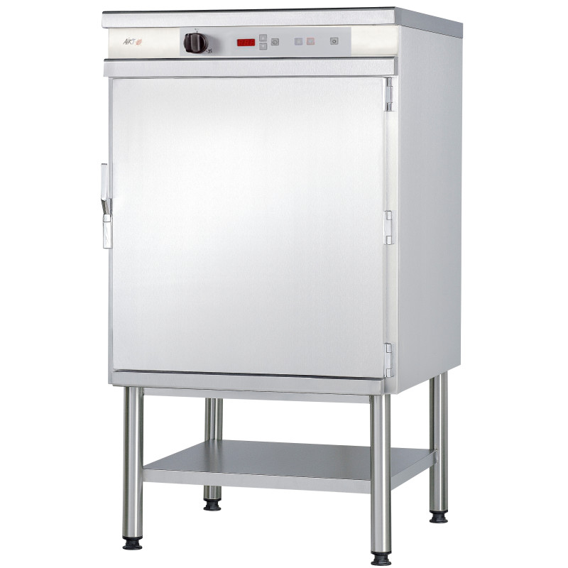 FOUR DE MAINTIEN ET REMISE EN TEMPERATURE 18 ou 20 Niveaux GN 1/1 ou 10 Niveaux GN 2/1 (à preciser lors de la commande version bacs inox ou barquettes). - Charge utile 72 kg - Commande et régulation électronique avec minuterie intégrée. Programme frites, Bacs inox et Humidificateur intégrés. Habillage et moufle intérieur acier inox. Thermostat multipoints. Thermostat de sécurité. Oura d évacuation. Livré avec support. - Conforme à la norme NF HYGIENE ALIMENTAIRE.
