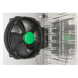 Cellule de refroidissement mixte 25 kg par cycle (+63°C à +10°C en 90 min) - 12 kg par cycle ( +63°C à –18°C en 270 min). Construction monocoque - Isolation haute densité HFO épaisseur 60 mm - Revêtement intérieur et extérieur Inox 304 - Fond intérieur arrondi sans marche en façade - Porte avec poignée profilé toute hauteur. Joints magnétiques & fongicides - Fond en pointe de diamant avec bonde - Charnières renforcées à rappel et blocage à 110°. Double format GN1/1 & 600 x 400 mm - 6 niveaux espacés de 60 mm. Puissance frigorifique 920W à –15/+32°C - Evaporateur ventilé traité cataphorèse - Moteur ventilateur evaporateur en ABS - Fluide frigorigène R290 - Dégivrage naturel -Bac de récupération des eaux de dégivrage - Pilotage automatique sonde ou minuterie. 4 roulettes dont 2 avec freins (pieds inox réglables Ø60 en option)