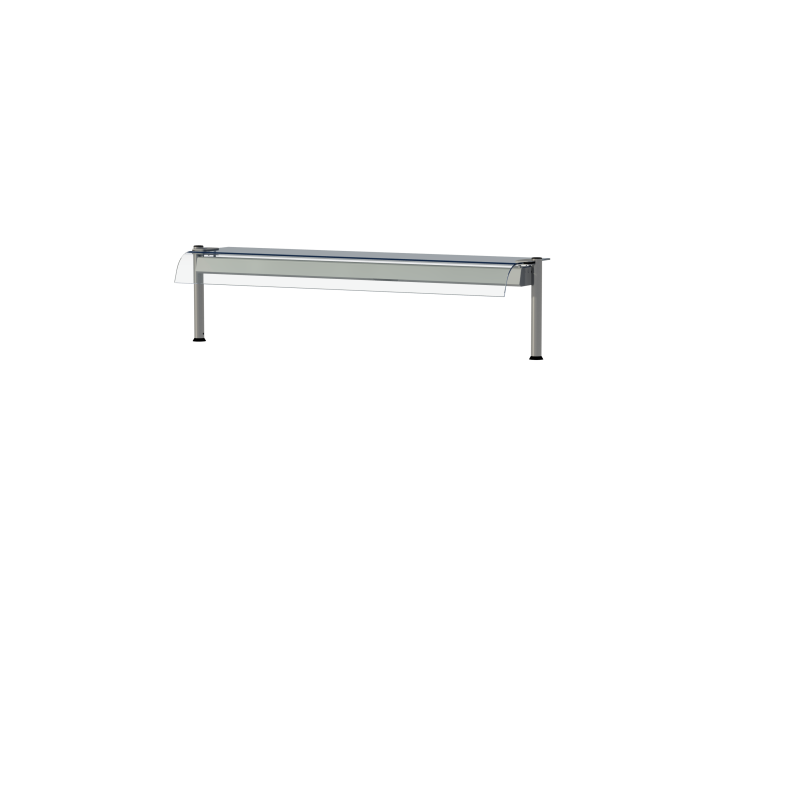 Présentoir des meubles réfrigérés 1 nx, etagère simple en verre trempé cintré 1 face et éclairage LED,6xGN1/1 AVEC BOUCHONS INOX POUR COLONNETTE DIAM.40 ET EMBASE TULIPEE INOX POUR PRESENTOIR