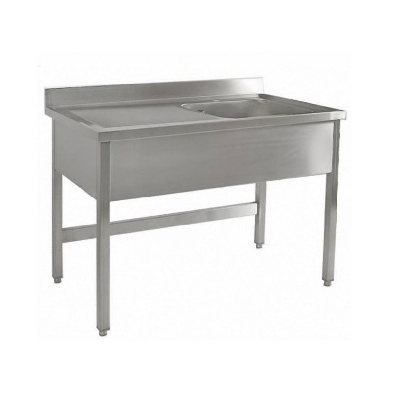 PLONGE SUR MESURE 1200 1 BAC 500X500 MM A EGOUTOIR GAUCHE+SUPPLEMENT DESSUS EP.20/10 JUSQU A 1800+BONDE SURVERSE/CREPINE HR280 BI TROU