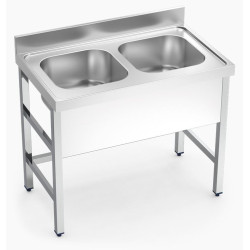 PLONGE SUR MESURE 1600 2 BACS 500X500 MM A+SUPPLEMENT DESSUS EP.20/10 POUR TABLE JUSQU A 1800+BONDE SURVERSE/CREPINE HR280 BI TROU