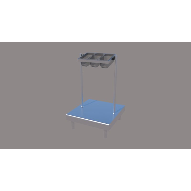 MEUBLE SURBAISSE POUR PLATEAUX 800 avec Présentoir à couverts 1 x 3 bacs polycarbonate GN1/3, Longueur 750