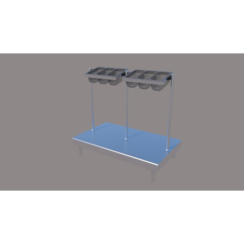 MEUBLE SURBAISSE POUR PLATEAUX 1400 avec Présentoir à couverts 1 x 6 bacs polycarbonate GN1/3, Longueur 1400